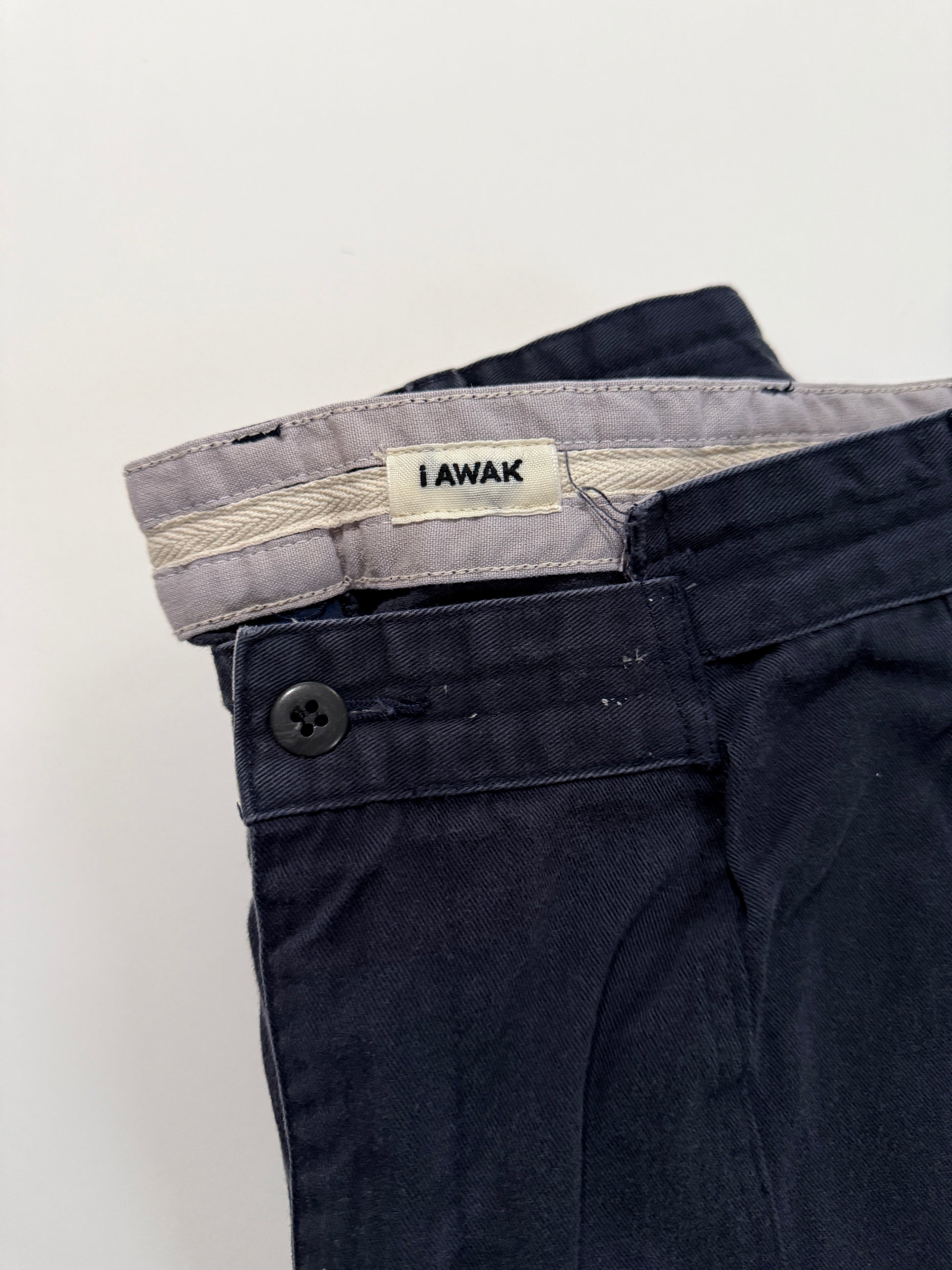 コットンのチノパンを大胆にリメイクし、センターに切り替えを入れることで立体的なラインに。