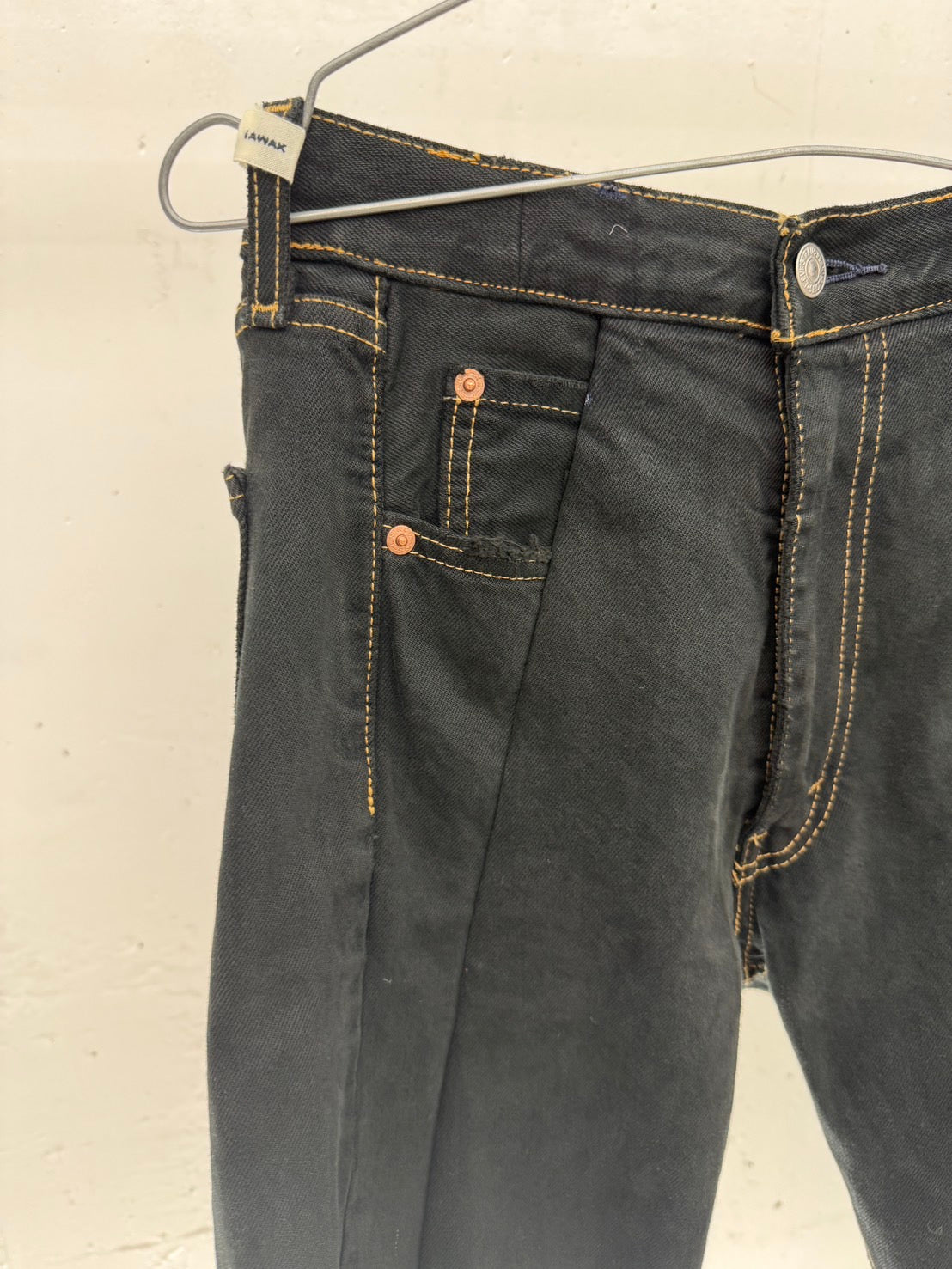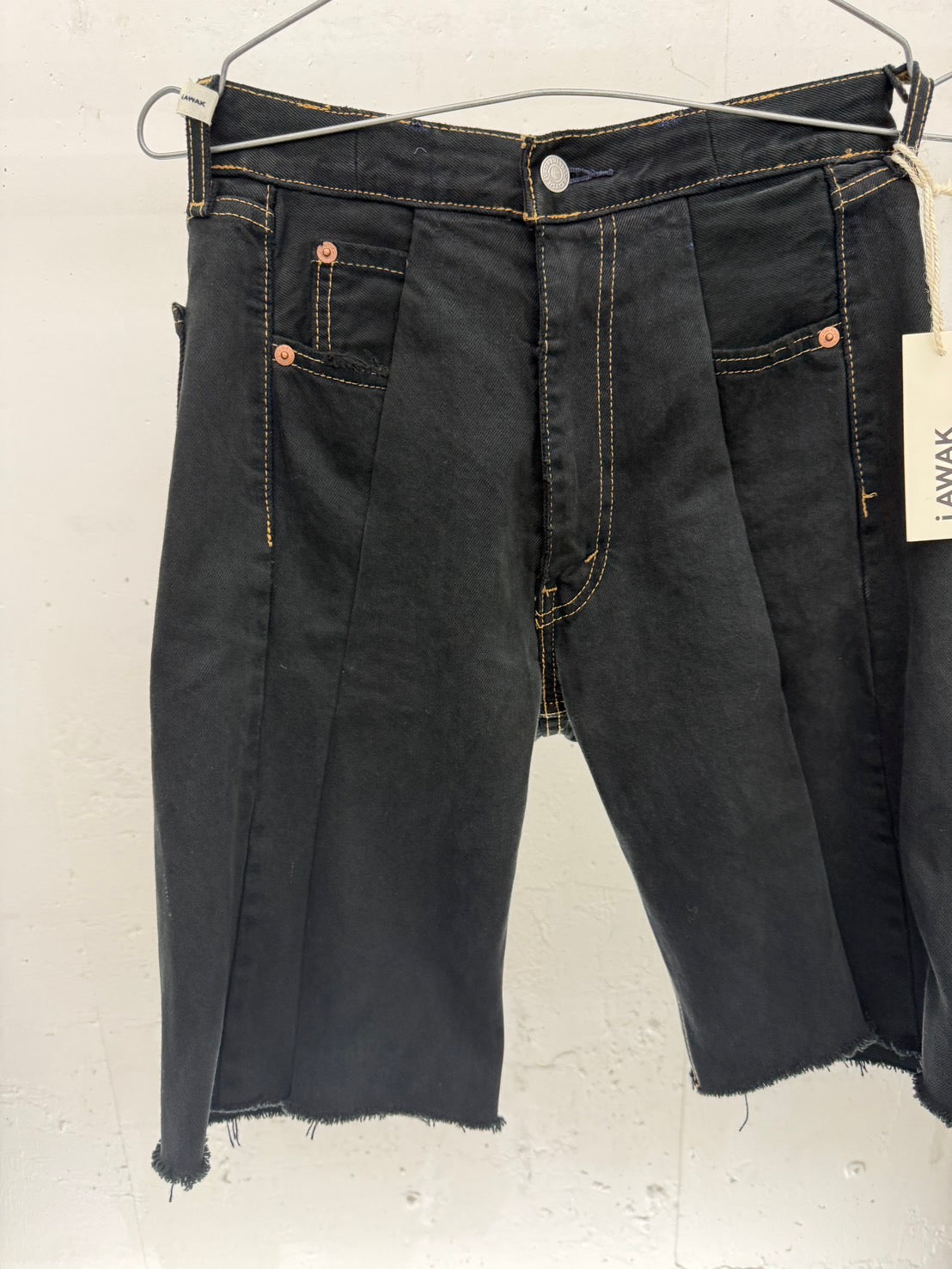 古着のデニムを使い、色違いのデニムを縫い合わせて作りました。