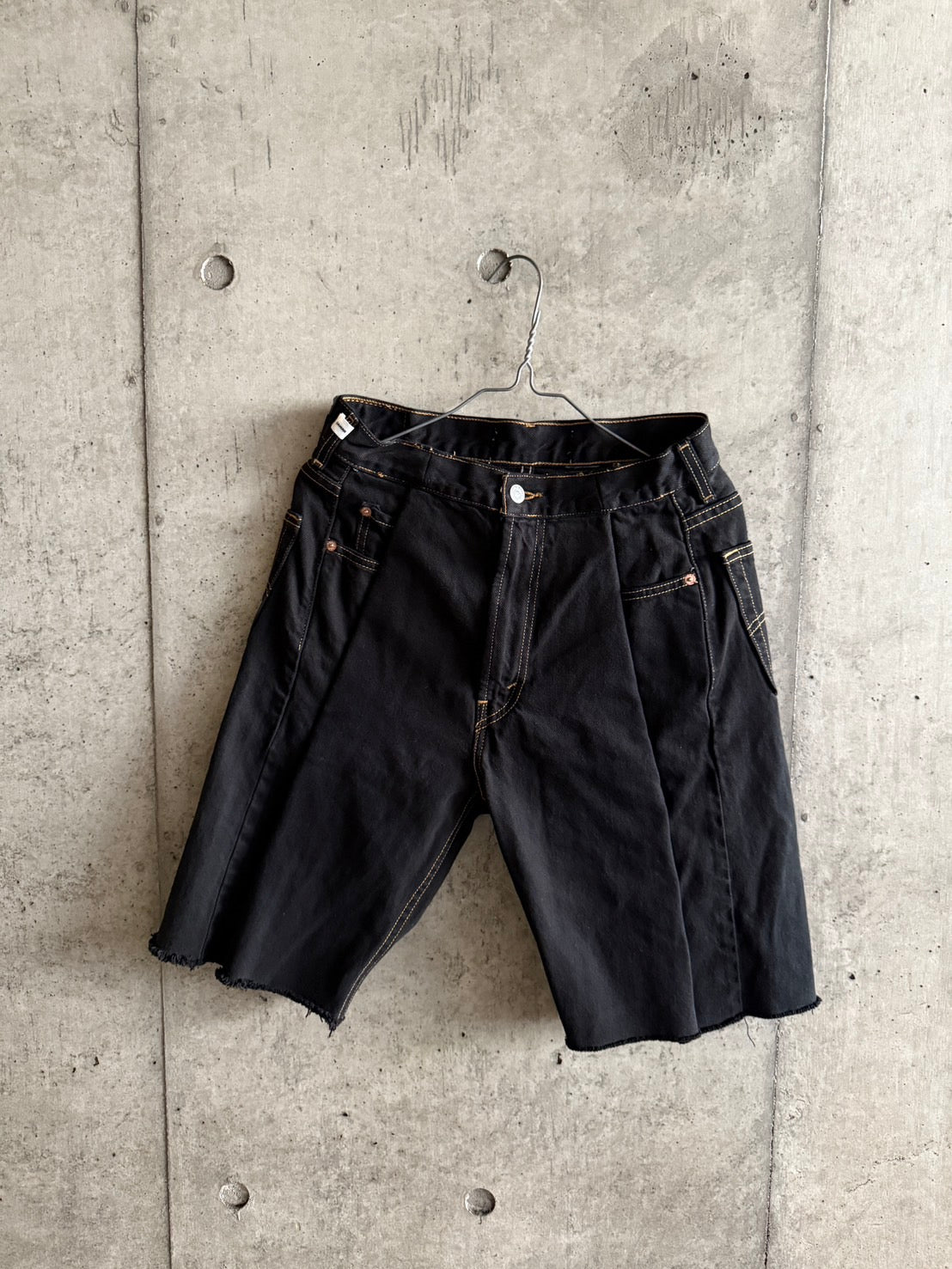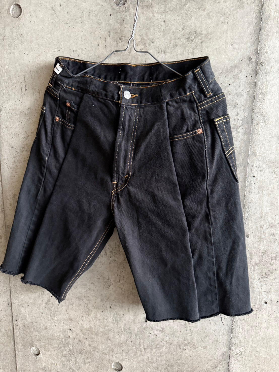 古着のデニムを使い、色違いのデニムを縫い合わせて作りました。