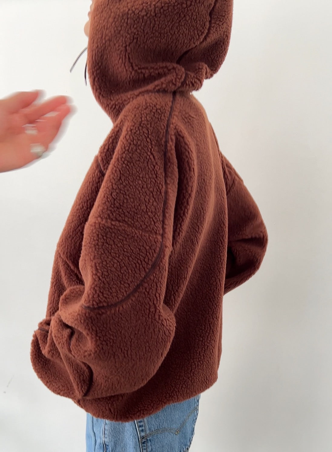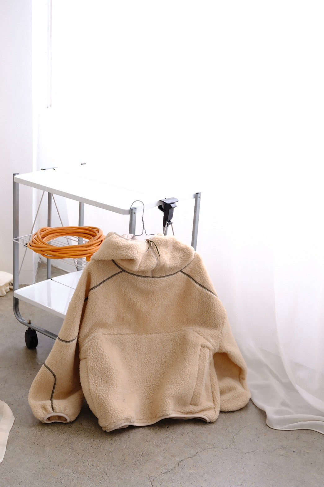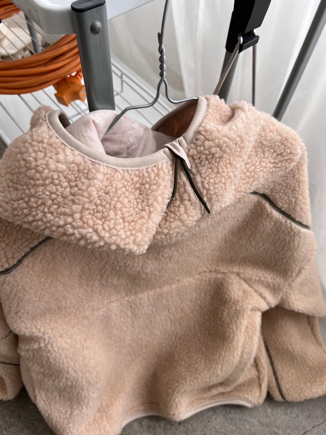 アウター感覚で着られるボアを使用したカジュアルなボアパーカー。